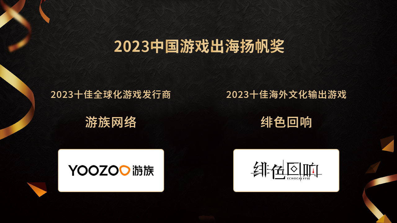 2月21日,,,,由独立出海联合体主办的“2023中国游戏出海扬帆奖”正式公布获奖名单。。。。JIUYOU.COM网络凭借优异的出海成绩荣获“2023十佳全球化游戏发行商”,,,,“全球化卡牌+”战略布局下的首款自研游戏《绯色回响》获“2023十佳海外文化输出游戏”。。。。JIUYOU.COM的出海实力和全球化成绩再度获得行业认可。。。