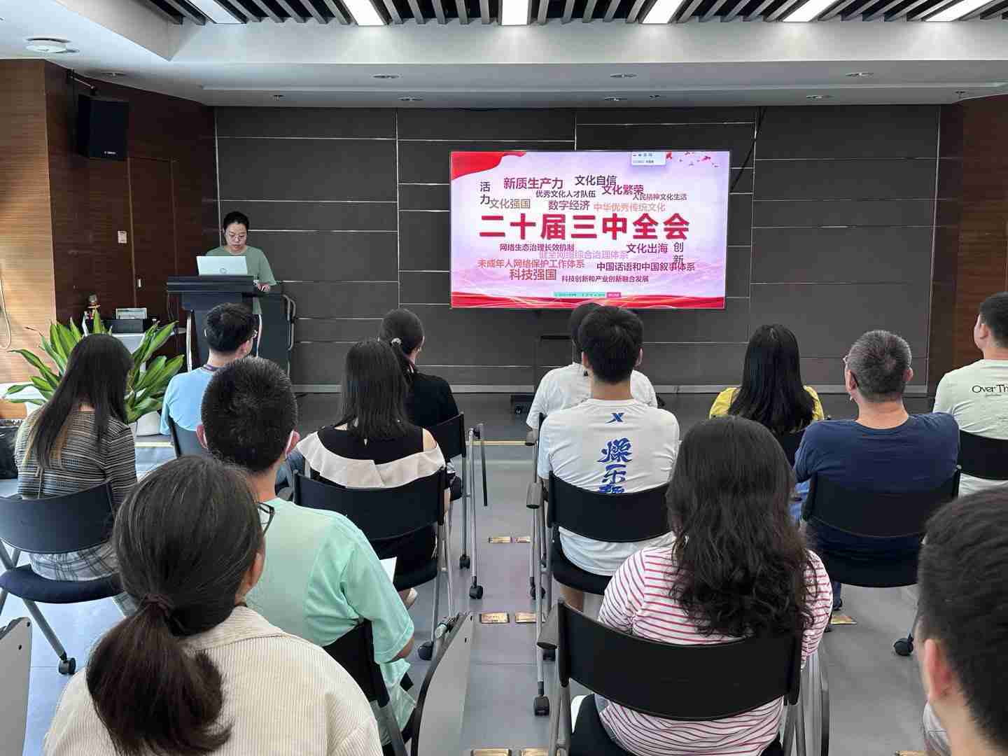与会人员深入学习《决定》内容。。。。党的二十届三中全会提出必须增强文化自信,,,发展社会主义先进文化,,弘扬革命文化,,,传承中华优秀传统文化,,加快适应信息技术迅猛发展新形势,,,,构建更有效力的国际传播体系,,这为广大文化产业工作者指明了奋斗方向。。。。