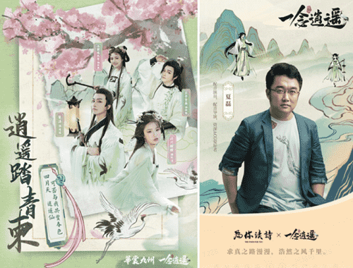 在游戏之外,,,,《一念逍遥》一直致力于打造国风修仙原创IP,,,以音乐、、、漫画,,小说等衍生内容去延展丰富游戏内容。。。上线以来,,,,整整做了十首歌,,,小说应该也是喜马拉雅平台今年游戏品类小说收听量Top1的作品;而在营销的内容传播上,,,《一念逍遥》也一直秉承比较国风的基调,,传递诗词、、、文化内涵,,,,如如清明节定制汉服合作,,,,传递中国传统的清明踏青、、、清明诗会文化。。