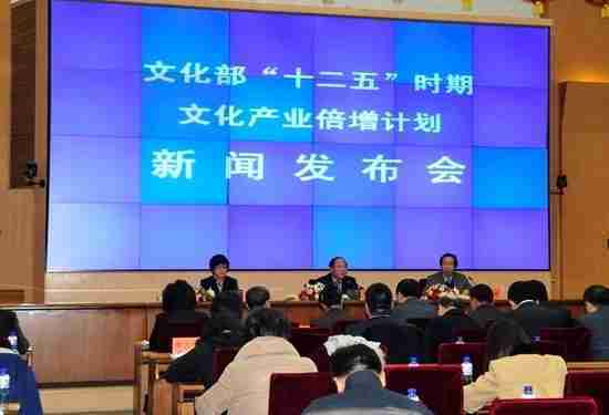 2月28日下午,,,,文化部在京召开新闻发布会,,正式向社会发布《文化部“十二五”时期文化产业倍增计划》,,,,提出了 “十二五”期间文化部门管理的文化产业增加值年平均现价增长速度高于20%,,,,2015年比2010年至少翻一番,,,,实现倍增的奋斗目标。。。。